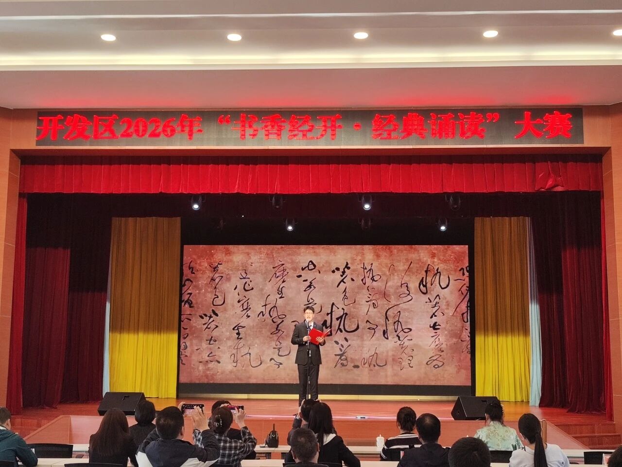 大赛还特邀三门峡朗诵协会会员、中华诵读联合会会员郑飞老师带来《献给世界读书日》的精彩表演,为活动增添了浓厚的艺术氛围。整场诵读涵盖经典诗词、红色篇章与时代佳作,既有中华文脉的深厚底蕴,也有峥嵘岁月的红色记忆,更有扎根岗位的奋斗故事,充分展现了新时代经开人凝心聚力、奋勇前行的精神风貌。