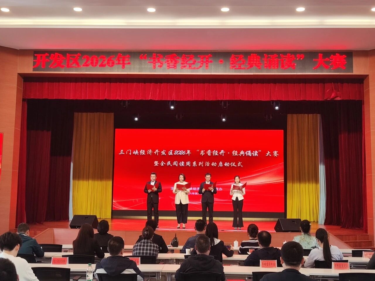 春深四月,书香致远。4月23日,正值第31个“世界读书日”,开发区举办“书香经开·经典诵读”大赛暨全民阅读周系列活动启动仪式,以诵读传经典,以书香聚力量,进一步营造全民阅读浓厚氛围,推动“书香经开”建设走深走实。区直各部门参加,管委会副主任王飞出席活动。